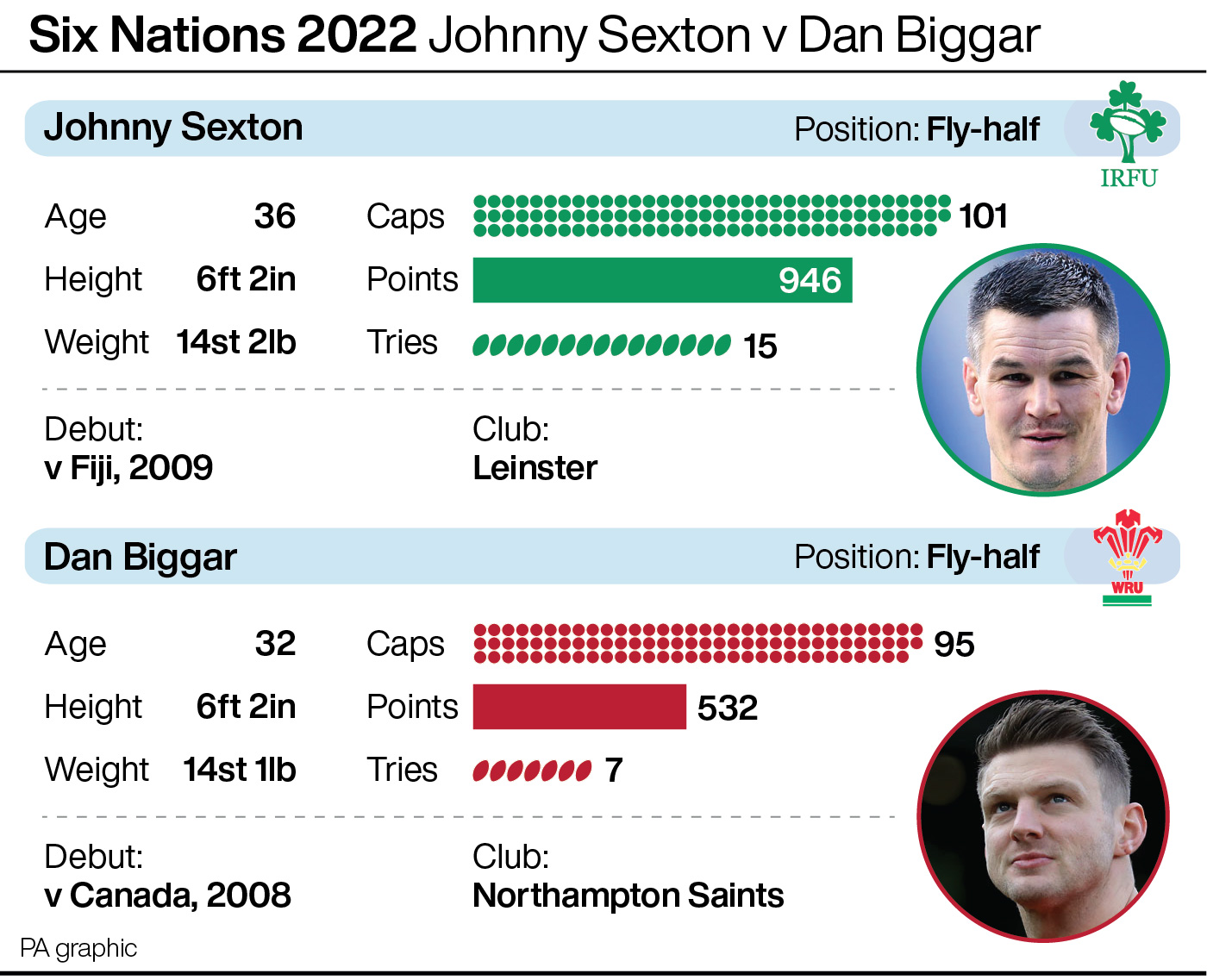 Intriguing individual contests will run through the game, but none more so than than the fly-half battle between Irish inspiration Johnny Sexton and new Wales captain Dan Biggar.