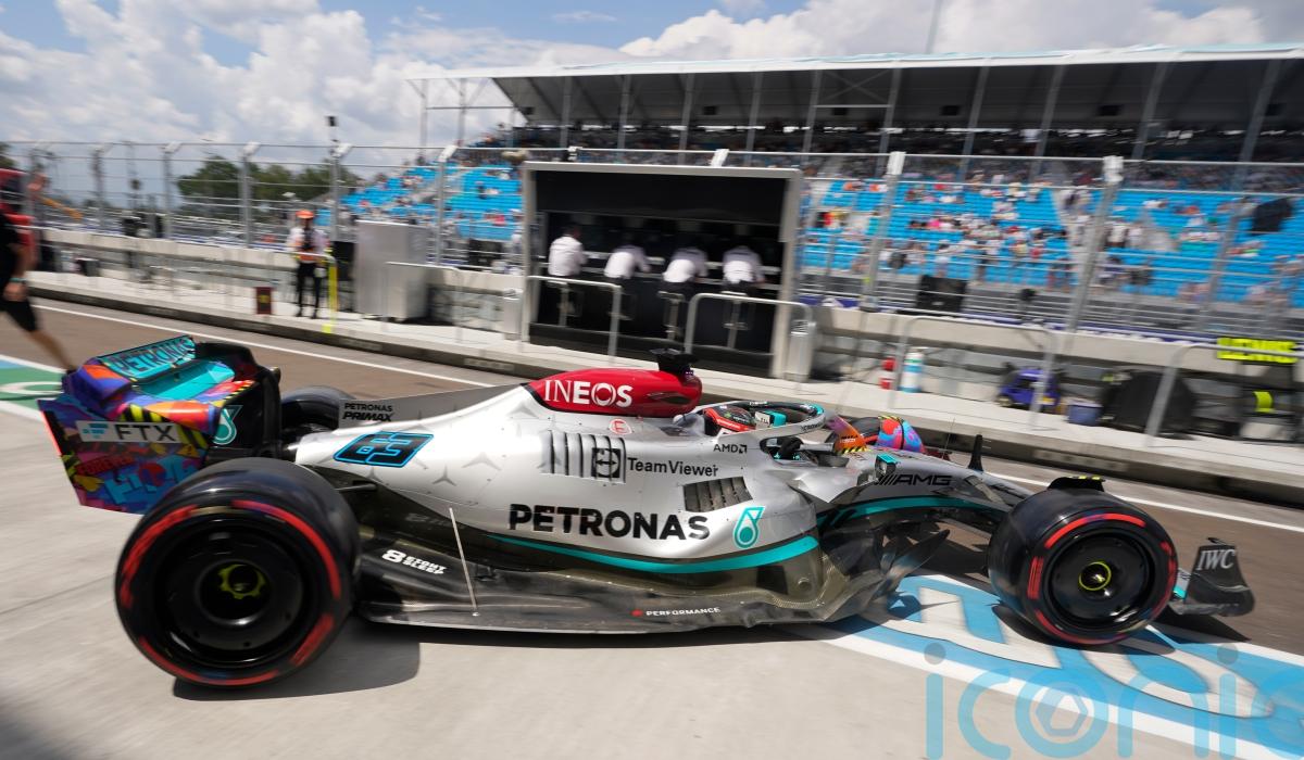 George Russell finished fastest in second practice for the Miami Grand Prix as Max Verstappen broke down in his Red Bull.