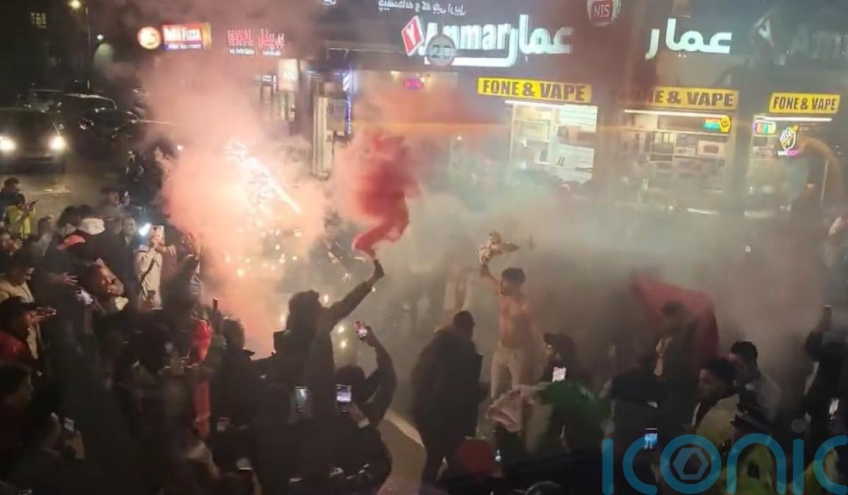 Hundreds of football fans took to the streets of London to celebrate Morocco’s win over Spain in the World Cup, with one onlooker describing the scene as “such a surreal experience” as smoke bombs were set off and dancing ensued.
