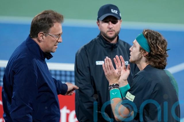 World number five Andrey Rublev was sensationally defaulted after being accused of swearing at a line judge in the deciding set of his semi-final at the Dubai Open.