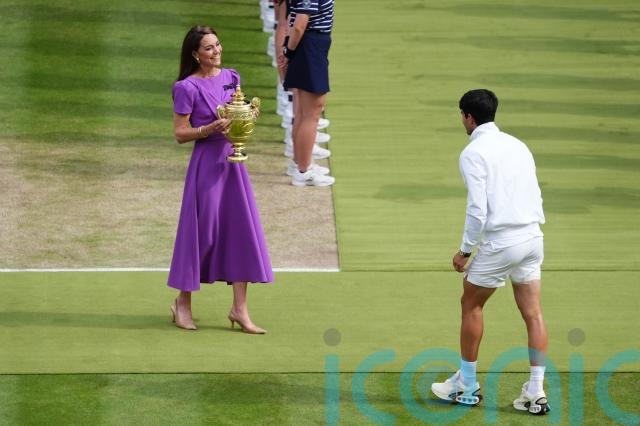 Kate had met former US Open winner Emma Raducanu and her British compatriots Sonay Kartal and Lily Miyazaki upon her arrival on day 14 of the Championships before she concluded a busy day with the men’s trophy presentation to back-to-back Wimbledon champion Alcaraz.