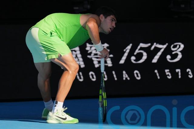 Alcaraz looked to be cruising on Rod Laver Arena at two sets to love up, only to suffer what appeared to be a bout of cramp late in the third set.