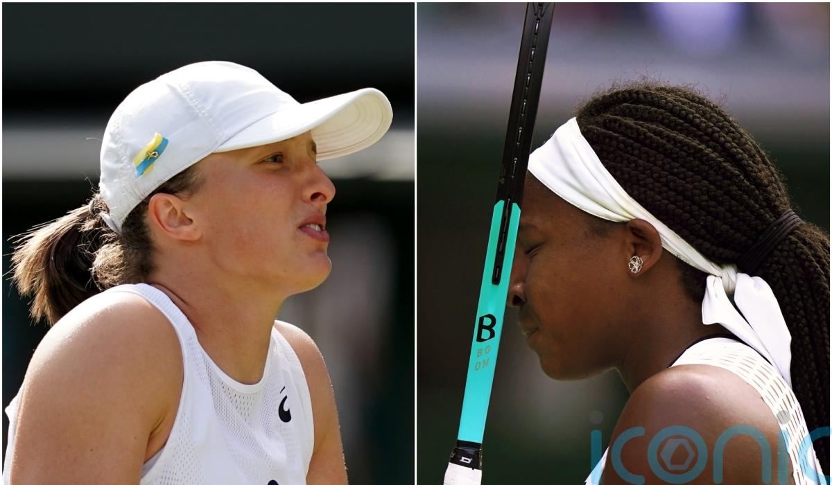 Wimbledon contenders Iga Swiatek and Coco Gauff suffered surprise defeats on day six of the Championships, which ended with an explosive Court One clash between Nick Kyrgios and Stefanos Tsitsipas.