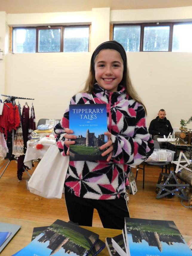 Emma is very happy with her purchase of the 'Tipperary Talks' book at the Tipperary Town Christmas Craft Market.