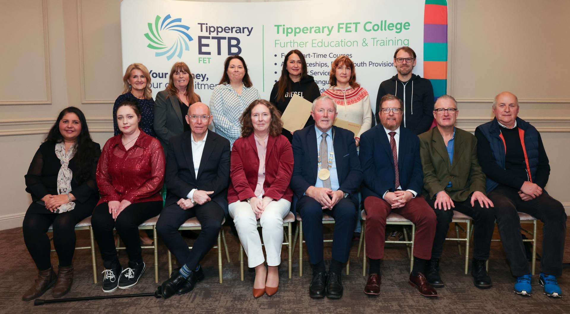 ESOL (English for Speakers of Other Languages) students at the Tipperary FET College Graduation Ceremony in the Abbey Court Hotel in Nenagh. Front Row: (L to R) Micheline De Oliveira; Maryna Moiseienko; Noel Colleran, Tipperary FET College; Deborah Ryan, Tipperary FET College; Cllr Roger Kennedy, Chairperson of Tipperary ETB; Colin Cummins, Tipperary ETB Director of FET; Caomhin Woods, Tipperary FET College; Oleksndr Moiseinko. Back Row: (L to R) Mary Jo Kennedy-Deegan, Tipperary FET College; Kathleen Broderick, Tipperary FET College; Sinead Harte-Jones, Tipperary FET College; Olena Malieta; Tetiana Kuprishkina; Oleksandr Kuprishkin.
