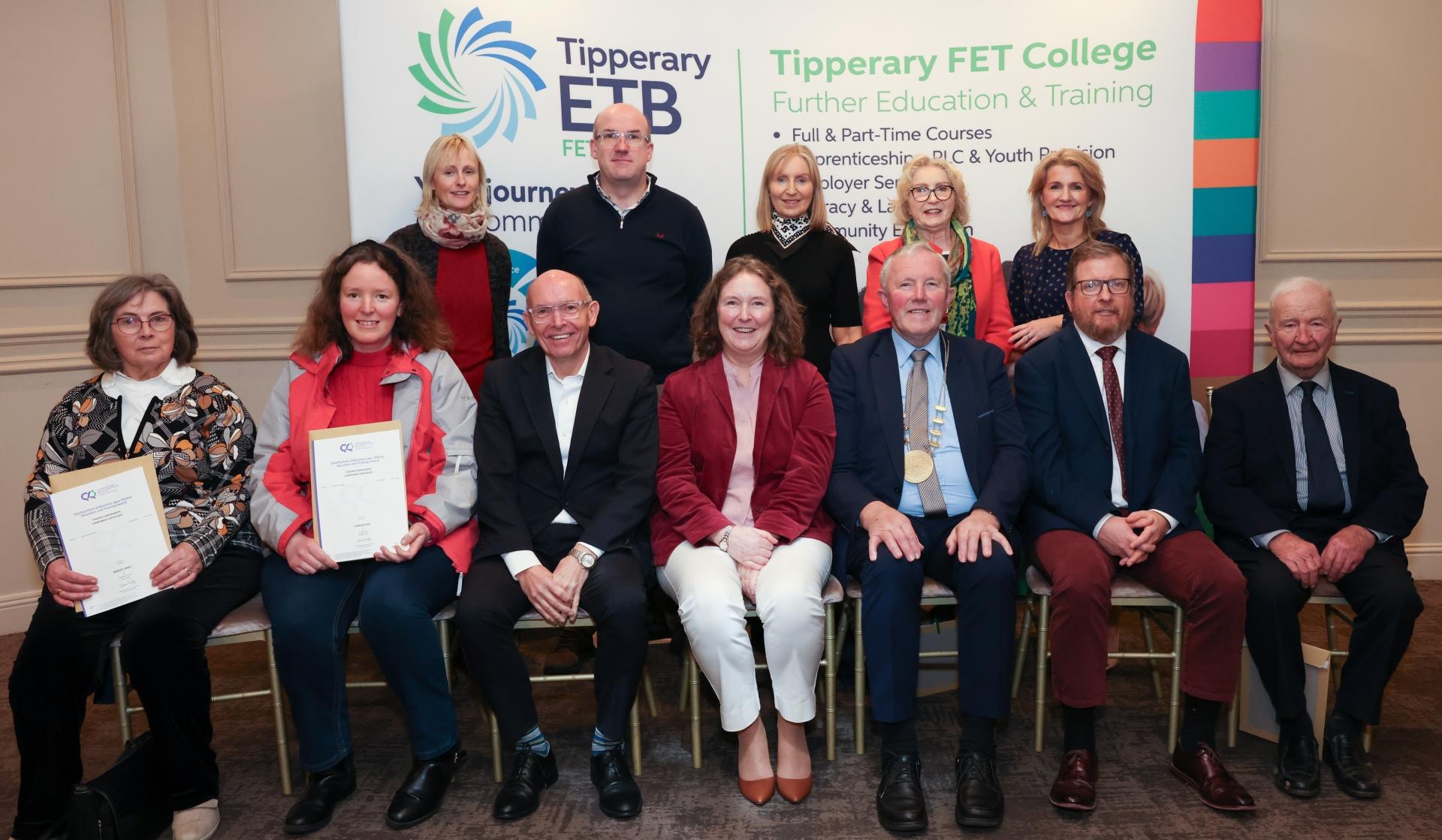 Students at the Tipperary FET College Graduation Ceremony in the Abbey Court Hotel. Front Row: (L to R) Bridget Carey; Ciara Butler; Noel Colleran, Tipperary FET College; Deborah Ryan, Tipperary FET College; Cllr Roger Kennedy, Chairperson of Tipperary ETB; Colin Cummins, Tipperary ETB Director of FET; John O’Meara. Back Row: (L to R) Triona Breen, Tipperary FET College; Finbarr O’Shea, Tipperary FET College; Kathleen Lyons; Mary Greene; Mary Jo Kennedy-Deegan, Tipperary FET College.