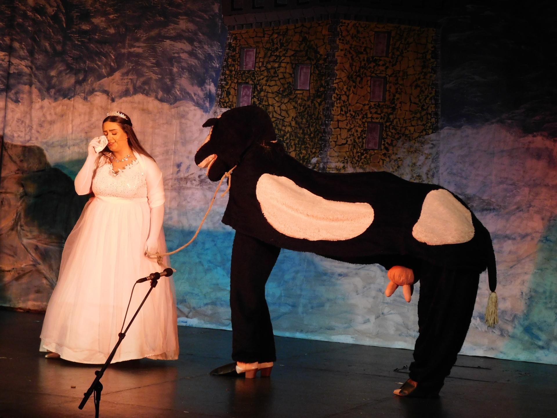 Princess Rosemary, Katie Russell, with Daisy the Cow in Cloudland, in Jack and the Beanstalk.