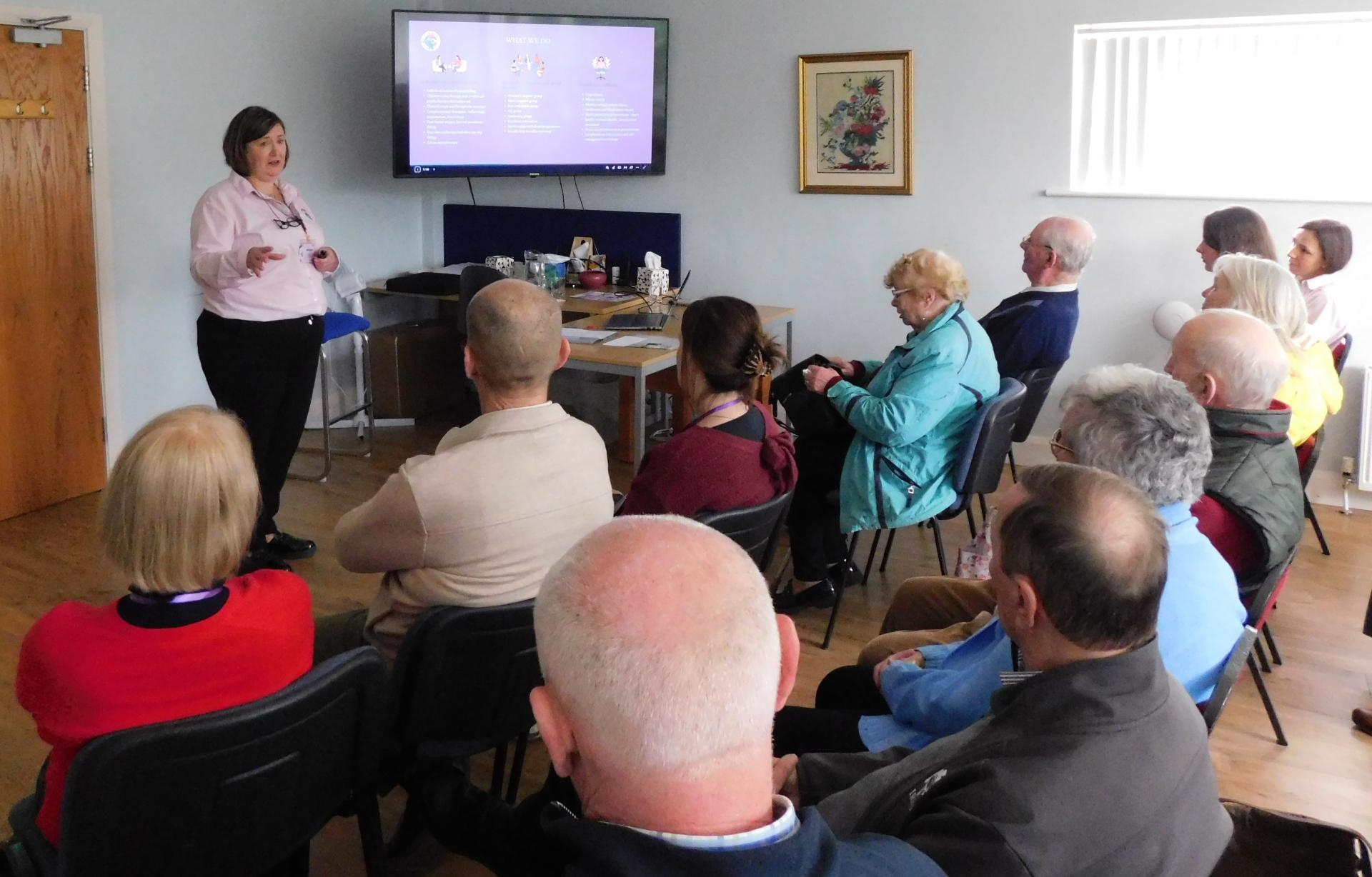 Centre Manager, Noreen Ryan Preston, addresses the attendance at the Circle of Friends Open Day.