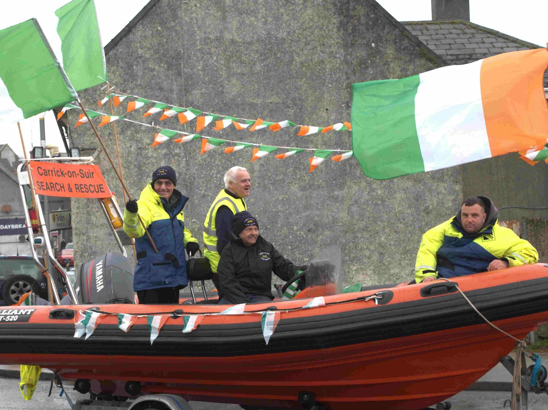 Carrick-on-Suir River Rescue members travelled on board one of the team's rescue boats in the parade