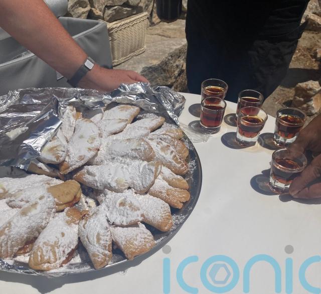 Stepping inside to the cooling interior is a relief, and an unexpected extra delight comes in the form of a small glass of the local liquor psimeni raki – which someone rightly claims “tastes like Christmas” thanks to ingredients like cinnamon and clove.