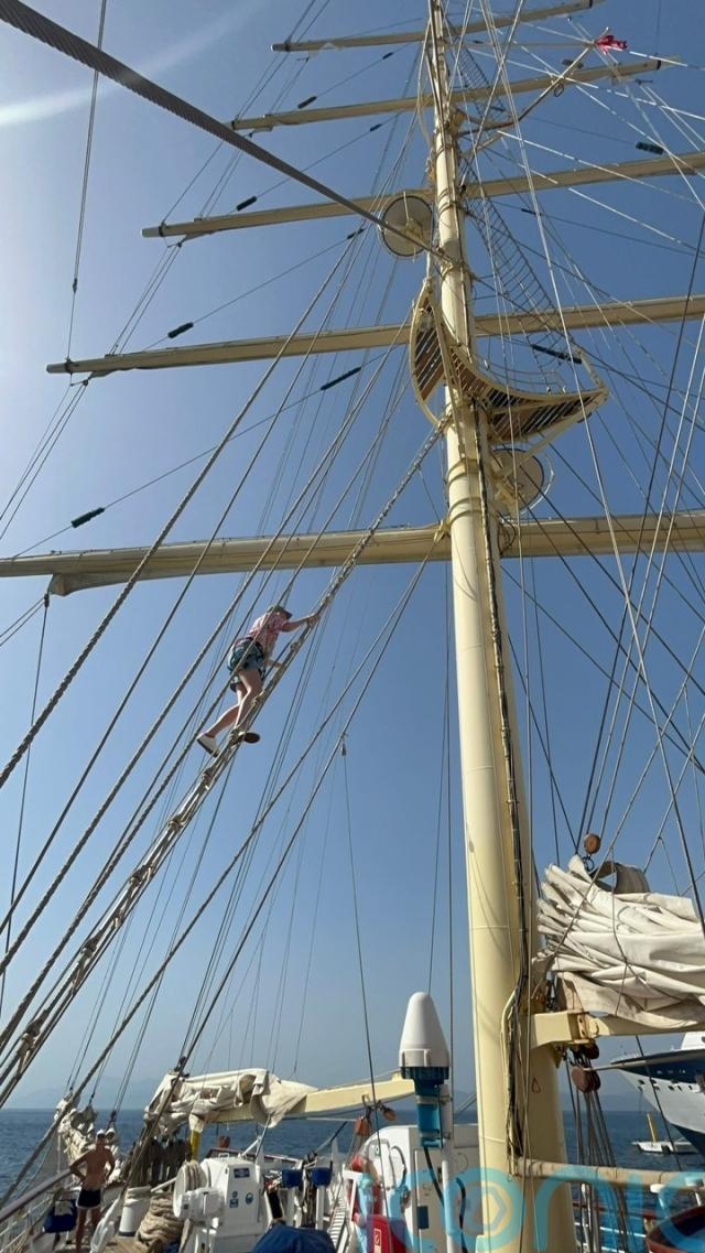 My 65-feet climb up the Star Clipper ship’s mast has been slow and steady, with a growing crowd gathered on-deck below to watch my progress.