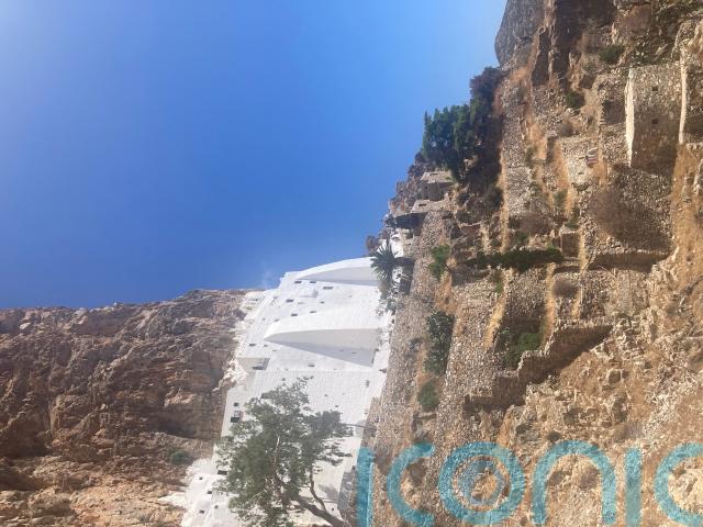 When I finally decide to try out my land legs once more, I don’t do it by halves – climbing around 260 steps to a cliffside monastery in sweltering Greek heat.
