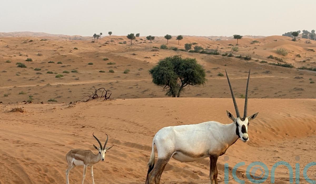 In the middle of the Al Wadi desert, an elegant white Arabian oryx, the national animal of the UAE, approaches our group, its ringed pointed horns almost as tall as the beast itself.
