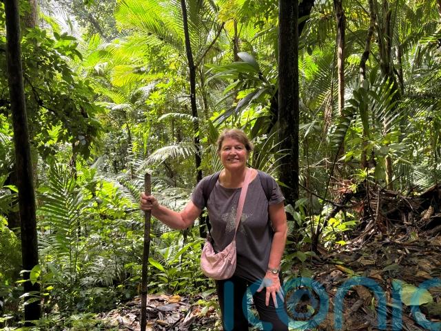 The overnight rain has left the Des Cartiers trail in the Quilesse Forest Reserve muddy, so we gingerly wend our way, negotiating the slippery path of decomposing leaves and avoiding exposed giant tree roots threatening to trip us up underneath the rich canopy of trees, where Nestor listens for bird calls and we all look up, straining our eyes for signs of these elusive species.