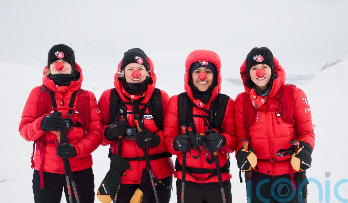 The quartet, who are the first all-female Red Nose Day celebrity challenge line-up, started their trek in Tromso, Norway, and used cross-country skis, fat bikes and snowshoes to travel 50km to the finish line.