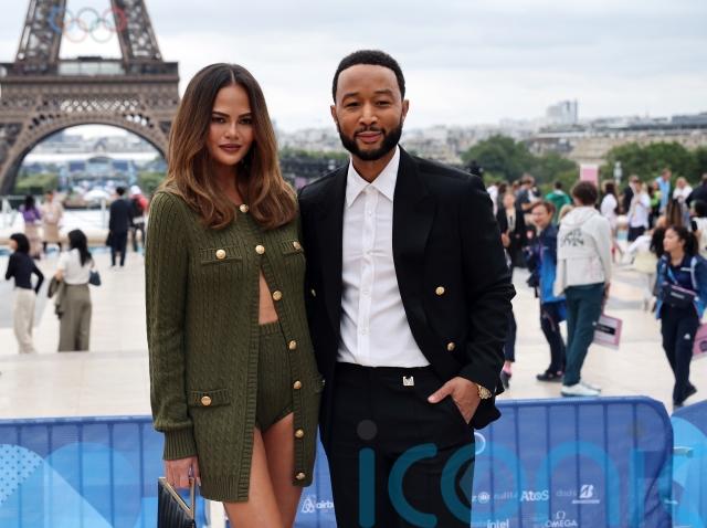 Legend, who sang a version of John Lennon’s Imagine in a video during the 2021 opening ceremony in Tokyo, wore a suit and white shirt while Teigen opted for a khaki-coloured ensemble with gold buttons.