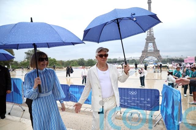 Braving the rain on Friday afternoon was editor in chief of American Vogue Anna Wintour and film director Baz Luhrmann.