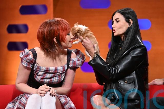 Also on the show is American actress Demi Moore, with her dog, Pilaf.
