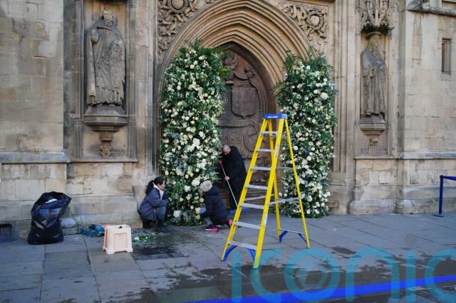 Earlier on Saturday, foliage was placed around the Abbey’s historic West Front door in preparation for the celebration.