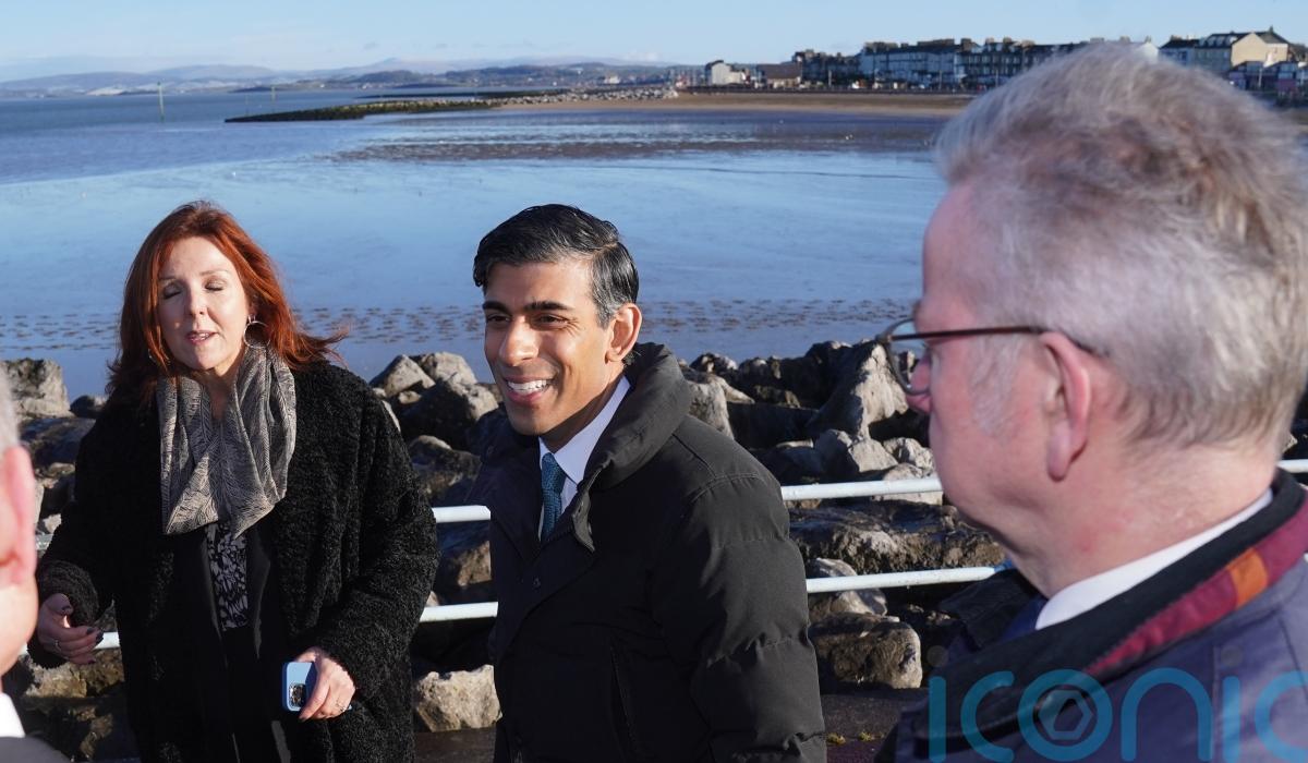 Mr Sunak was joined by Levelling Up Secretary Michael Gove for a walk around the seafront in the Lancashire town to see the proposed site of the Eden Project North, after announcing £50 million of funding for the project from the Government’s levelling up fund.