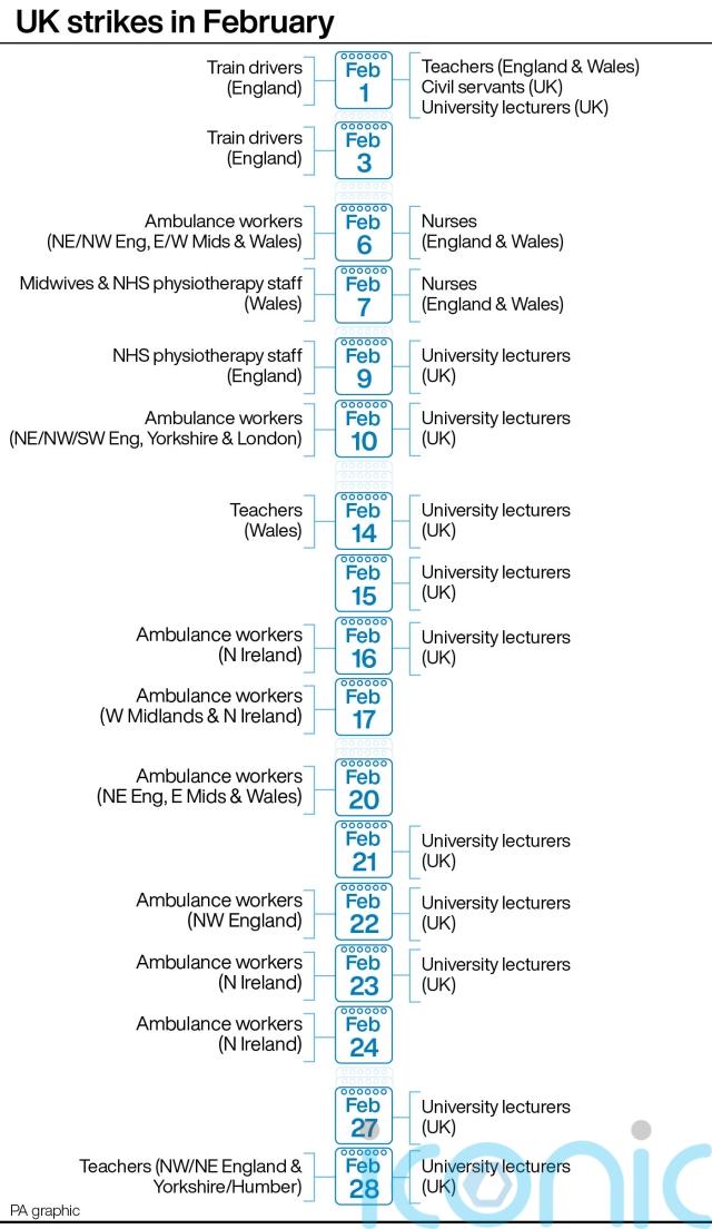 Thousands of Environment Agency workers are also expected to strike on February 8 in a dispute over pay.