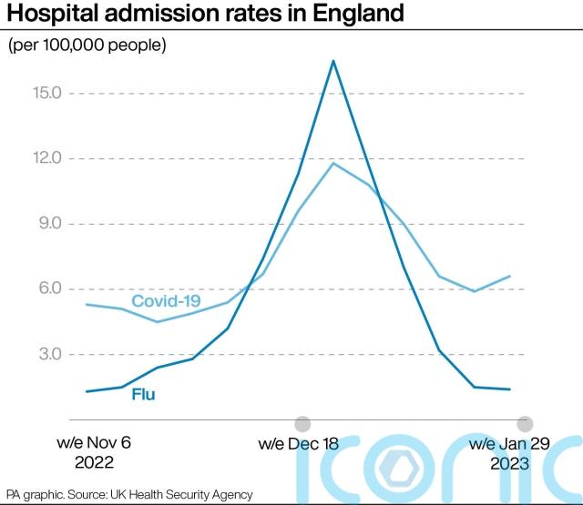 The rate of flu admissions to hospital stood at 1.4 per 100,000 people last week, down from 1.5 the previous week and the lowest since the beginning of November.