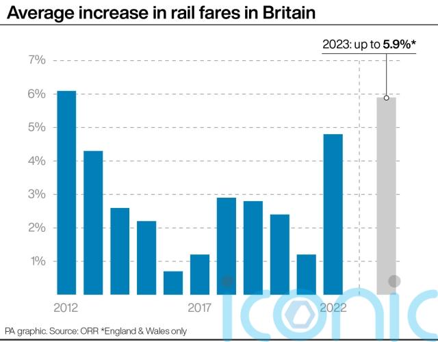PA news agency analysis of Office of Rail and Road (ORR) data found the annual fares rise is the largest since a 6.1% jump across Britain in 2012.