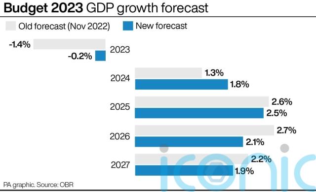 Jeremy Hunt said the economy would avoid a technical recession, although the Office for Budget Responsibility (OBR) still forecast a contraction of 0.2% this year, a significant improvement on the -1.4% predicted in November.