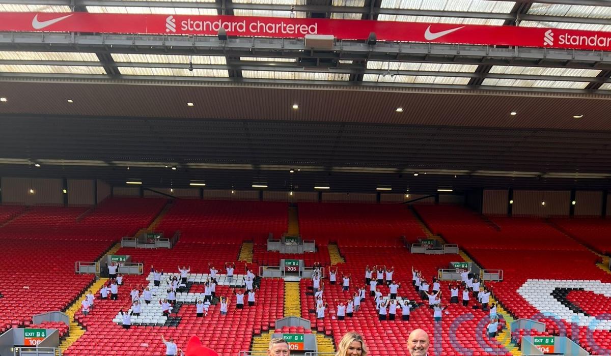 The giant Hidden Disabilities Sunflower lanyard, which is often worn by people who may need extra support, was confirmed as the new title-holder after the total length of 3,784.50 metres (12,416ft) was stretched around the stadium’s famous Kop terrace.