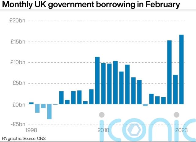 The ONS said the February figure leaves the Government with £20.2 billion of headroom for borrowing in March.