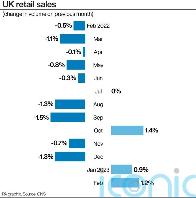 “Retail grew sharply in February with sales returning to their pre-pandemic level,” said ONS director of economic statistics Darren Morgan.