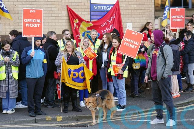 Picket lines were mounted on Monday outside offices in Glasgow, Durham, Liverpool, Southport, Peterborough, London, Belfast and Newport in Wales.
