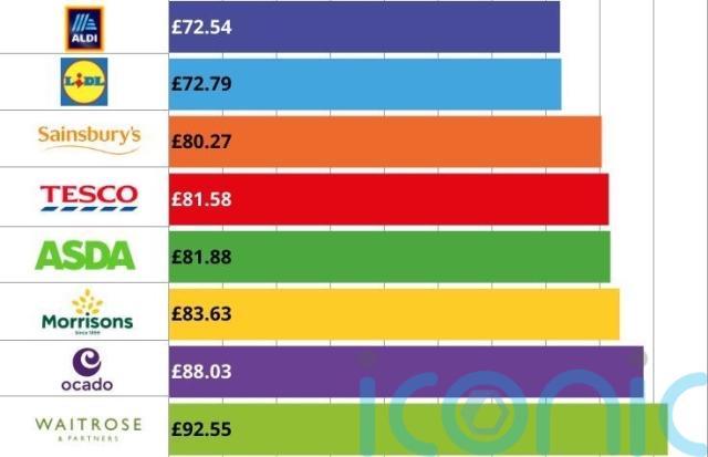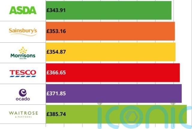 Sainsbury’s was the next cheapest, costing £9.25 more.