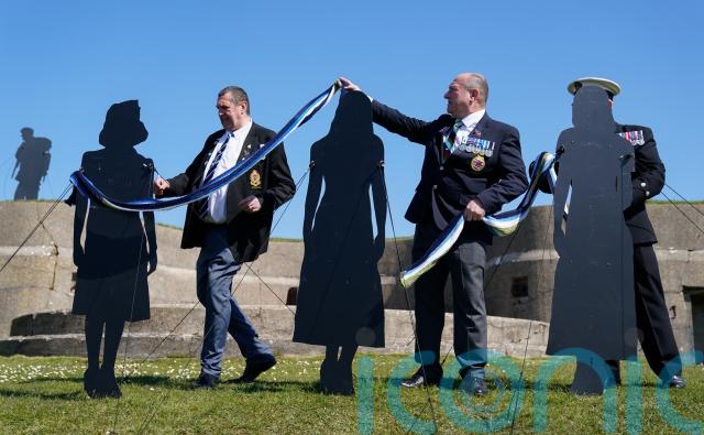The art installation, Standing With Giants, has been installed in the parade ground at Fort Nelson overlooking Portsmouth, Hampshire, where many of the Royal Navy ships set sail for the 1982 war.