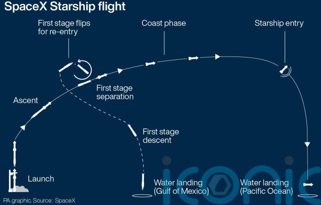 The Starship spacecraft and Super Heavy rocket – collectively referred to as Starship – both appeared to flip in the air a number of times before disappearing in a fireball over the ocean about four minutes after lift-off.