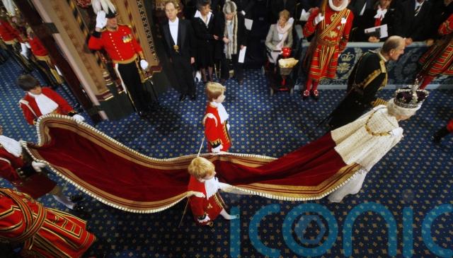 The King will arrive wearing a crimson Robe of State, made for his grandfather George VI’s coronation in 1937.