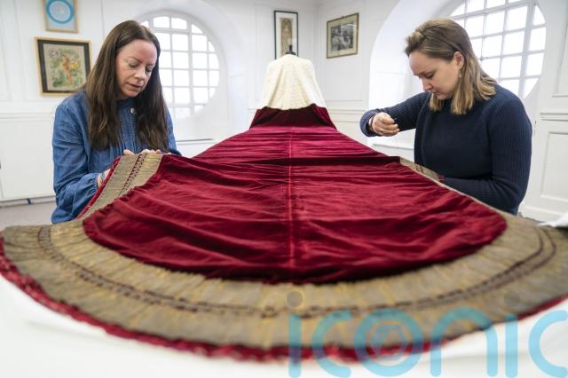 The heavy cloak, weighing around 3-4kg, was made for the King’s extravagant ancestor George IV in 1821.