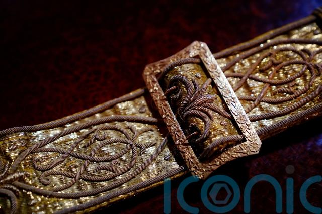 The embroidered cloth of gold has a gold buckle stamped with national emblems.