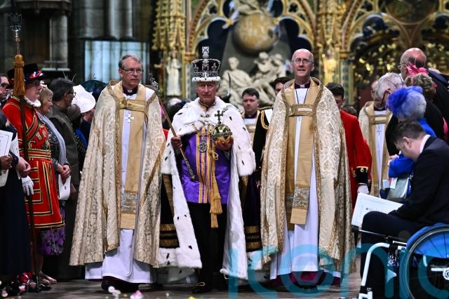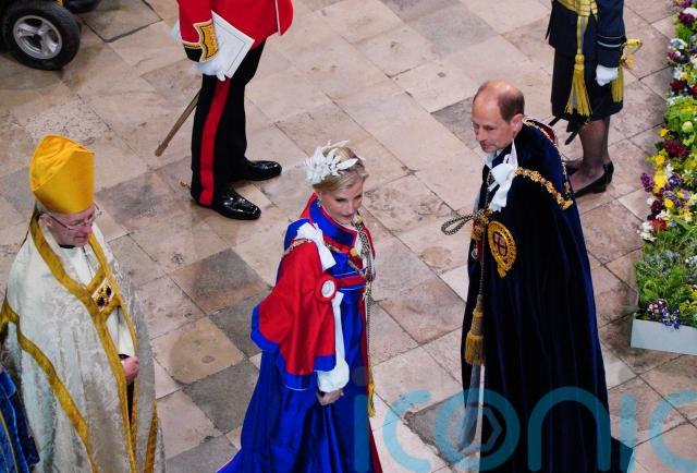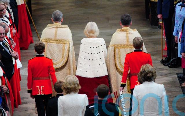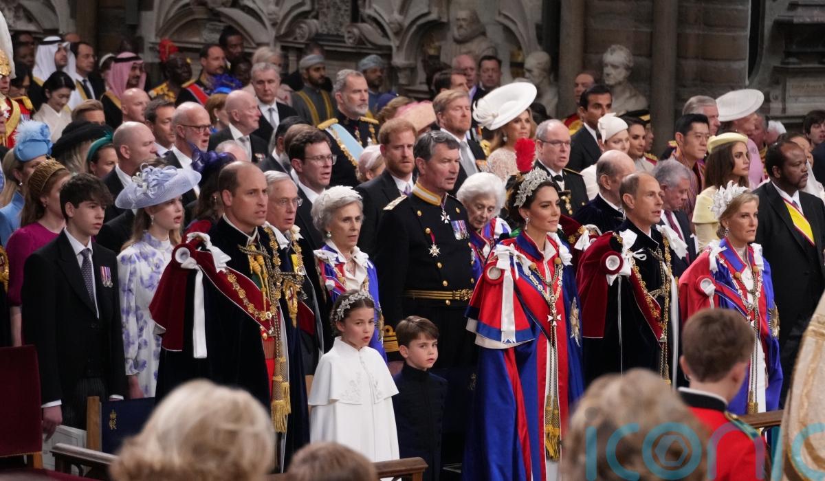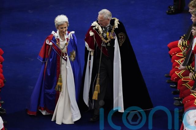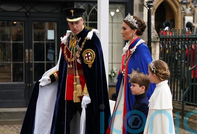 The royal family wore an array of intricate gowns and grand velvet cloaks signifying their membership of historic orders of chivalry at the King and Queen’s coronation.