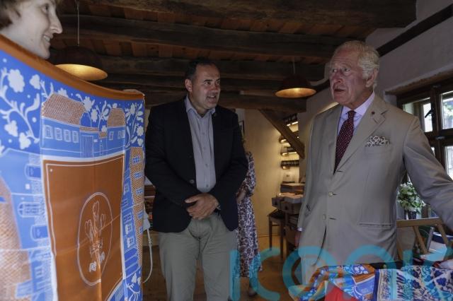 The King met people keeping traditional craft skills alive in the village of his Romanian holiday let on Tuesday.