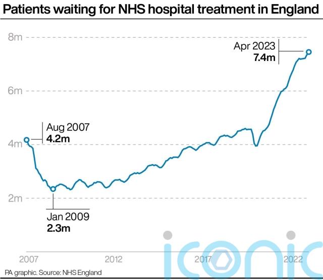 An estimated 7.4 million people were waiting to start treatment at the end of April, up from 7.3 million in March.