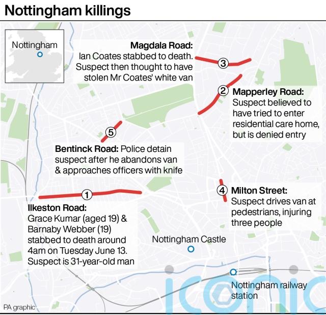 After the pair were found unresponsive in Ilkeston Road, Mr Coates was found fatally knifed in Magdala Road before the suspect is believed to have stolen his van and driven at pedestrians in Milton Street.