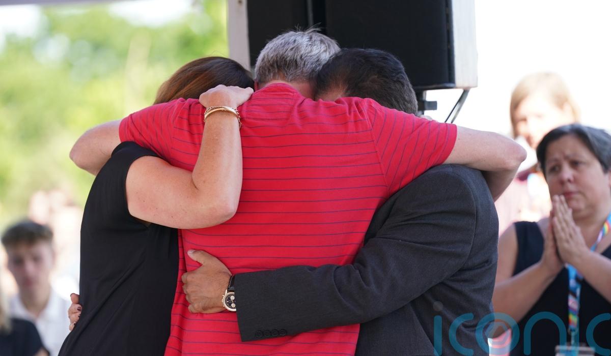 Barnaby’s father David told those gathered that “his heart will be with you guys forever” while Grace’s father Sanjoy told the students to look after each other.