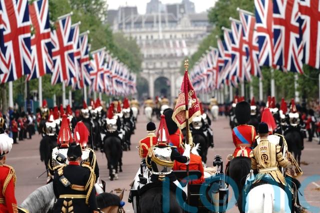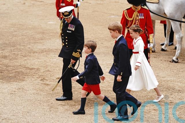 Travelling in a carriage were the Queen, who is Colonel of the Grenadier Guards, and the Princess of Wales as Colonel of the Irish Guards, along with Prince George, nine, Princess Charlotte, eight, and five-year-old Prince Louis.