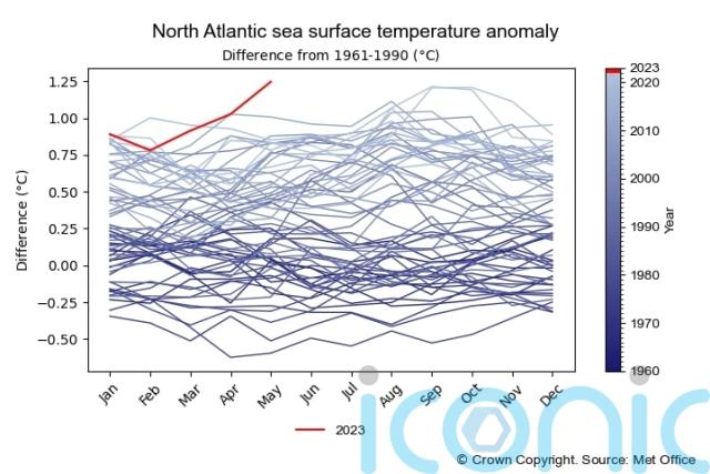 The North Atlantic is also experiencing record high temperatures for this time of year.