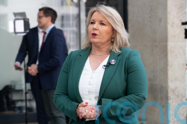 Pat Cullen, general secretary of the Royal College of Nursing (RCN), spoke to nurses during a visit to a hospital in Guildford, Surrey, on Monday, as union members continued to vote on whether to continue taking strike action over pay and staffing until the end of the year.