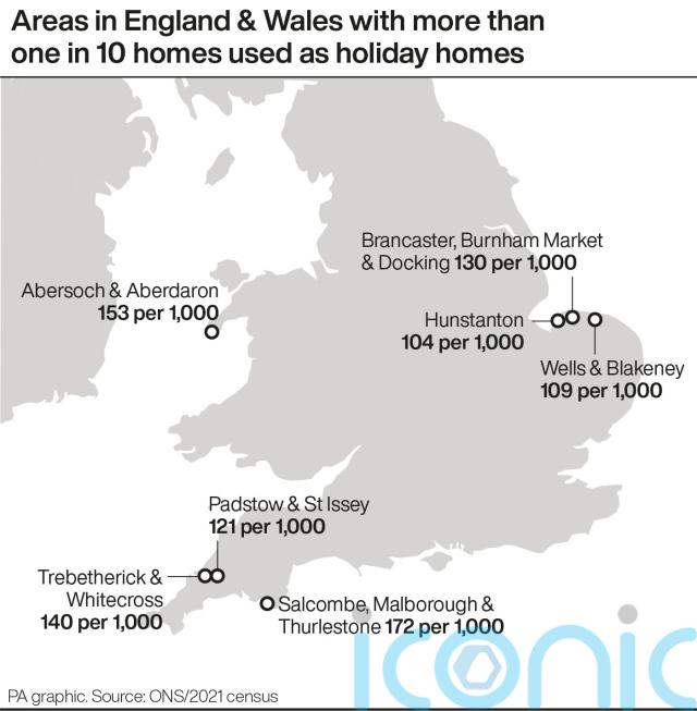More than 1 in 10 addresses were used as holiday homes in some areas, according to the Census.