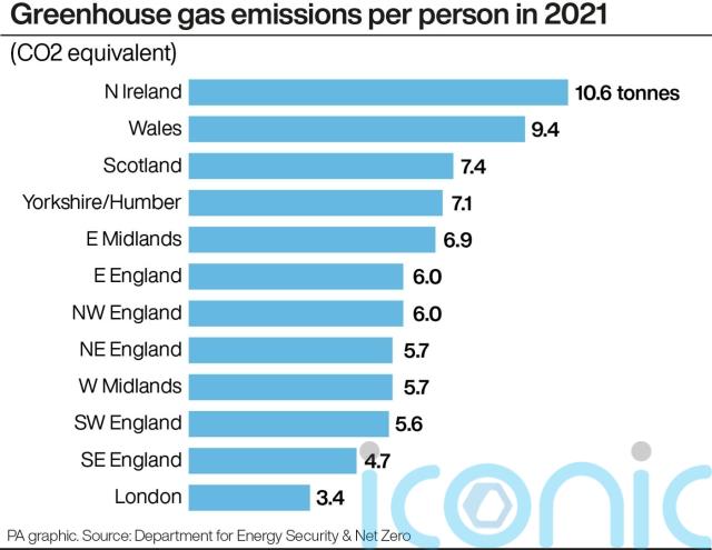 The Department for Net Zero and Energy Security, which published the figures, said measuring emissions on a per capita basis allows for comparison between areas with different sizes of population, but stressed that emissions are driven by many other factors besides how many people there are.