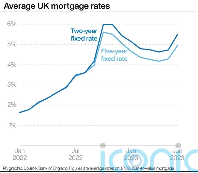 The average household will see their monthly interest payments go up by about £220 if they remortgage during the second half of this year, based on their mortgage rate going up by about 3.25 percentage points, the Bank said.