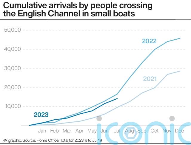 The total number of migrant crossings for 2023 so far is still lower than the more than 15,000 arrivals recorded this time last year.